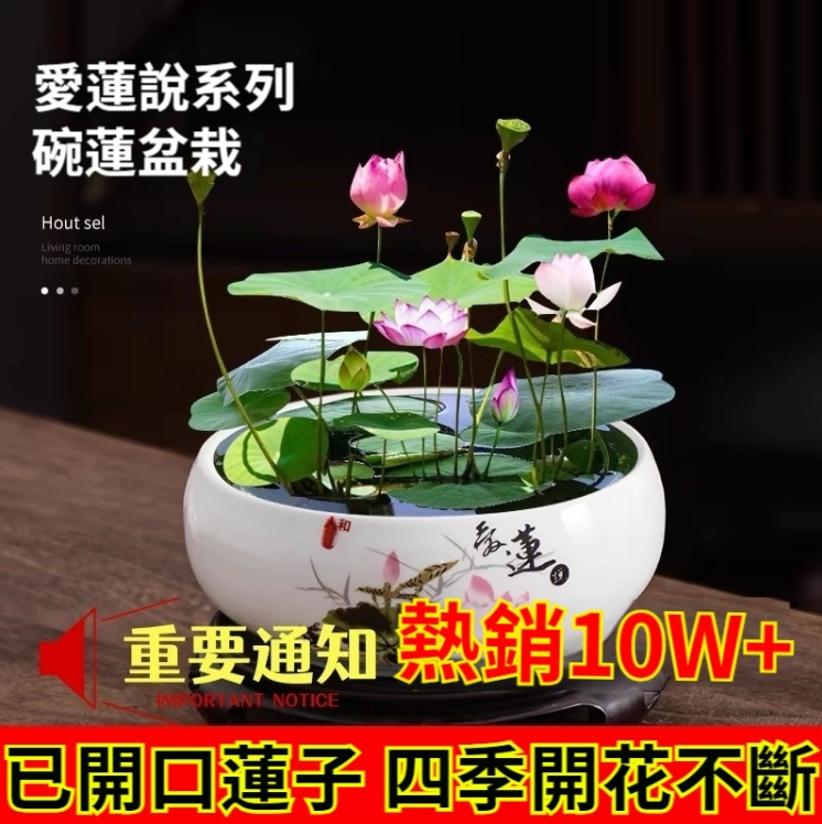 4分鐘前『招財轉運』水培碗蓮 - ★★★店主推薦【50粒+碗蓮專用營養液2+養殖盆】【綠葉+莊根+促芽+催花】,開爆了!僅需NT$801